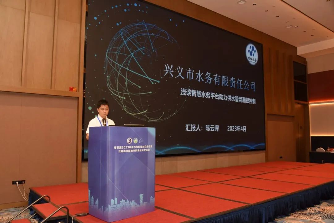 在会上,兴义市水务有限公司数字技术中心主任陈云晖作主题为《浅谈智慧水务平台助力供水管网漏损控制》的交流发言,分别就兴义水务基本情况、智慧水务建设、管网控漏以及下一步规划这四个维度进行技术分享交流。