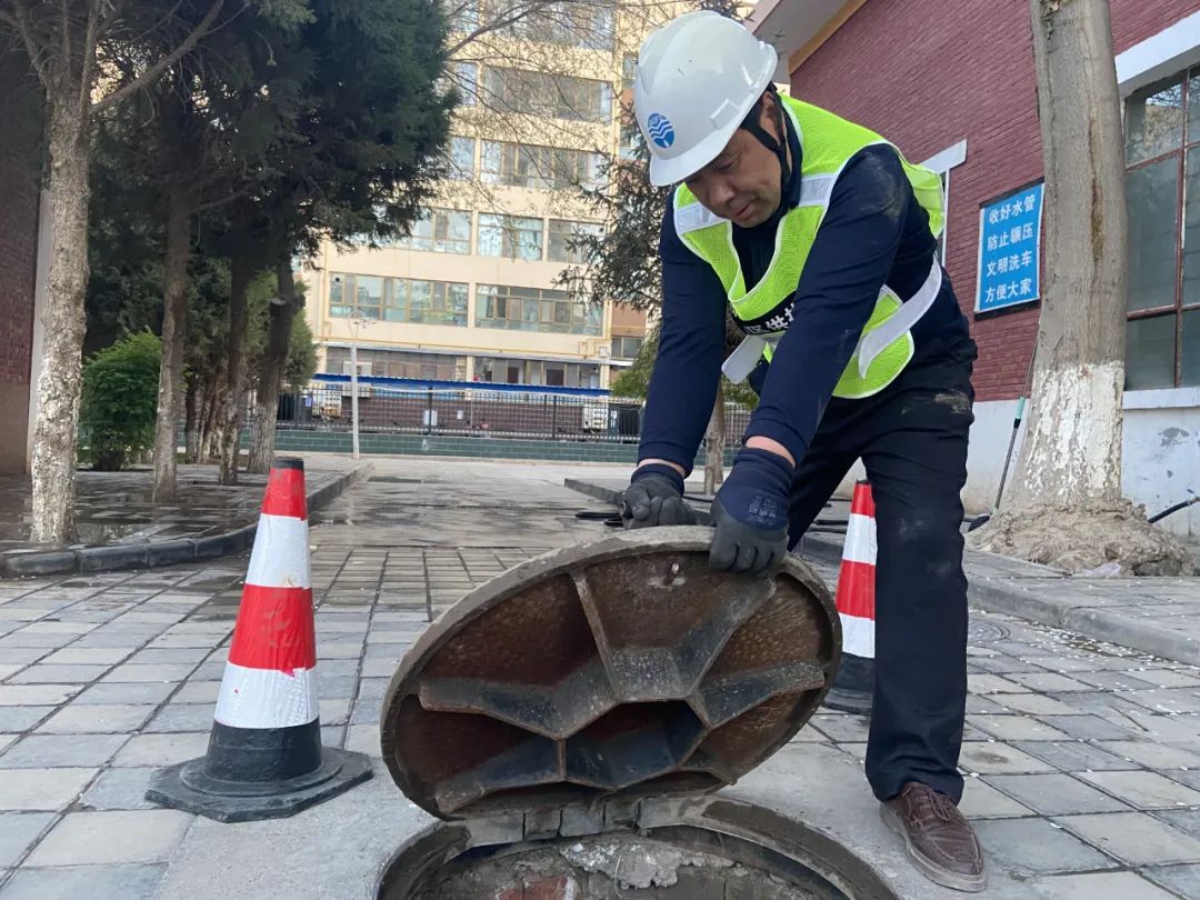 “何队长,西文化街片区5号楼有用户打电话报修,您快过去。”“好的,我们马上过去。”4月29日下午2时,肃州区城市供排水服务中心应急维修队队长何俊海刚到单位,就接到了受理调度中心的电话,他立刻带领队员出发。抵达西文化街片区后,队员们立即拉起警戒线,架起警示灯,开始排水疏通任务。他们用高压水车清洗疏通排水管道,并用铁锹清掏井内垃圾,经过一个多小时的紧急抢修,排水管道恢复了正常。