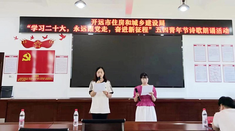 为纪念五四运动104周年,进一步加强队伍文化建设,丰富干部职工文化生活,激发全体职工上下团结拼搏、勇于挑战、争创一流的工作热情,提升住建系统队伍凝聚力,近日,由开远市住房和城乡建设局主办,市园林局承办的“学习二十大,永远跟党走,奋进新征程”五四青年节诗歌朗诵活动在凤凰山公园游客中心二楼会议室举行,住建系统参与活动队伍共12支,开远市自来水公司4名青年干部职工参加。