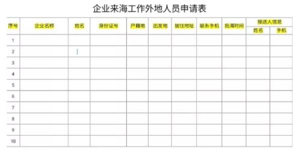 2.自即日起,各区镇每天下午2点前申报辖区内企业外地来海人员名单和相关信息(见附表),并安排专人到卡口负责接送,人员名单同步上报。各区镇一律按照市疫情防控指挥部企业防控组筛查通过的名单信息出具《来海复工人员准入证》,卡口凭证放行,由接送人员接回后按照不同类别,落实集中隔离措施。