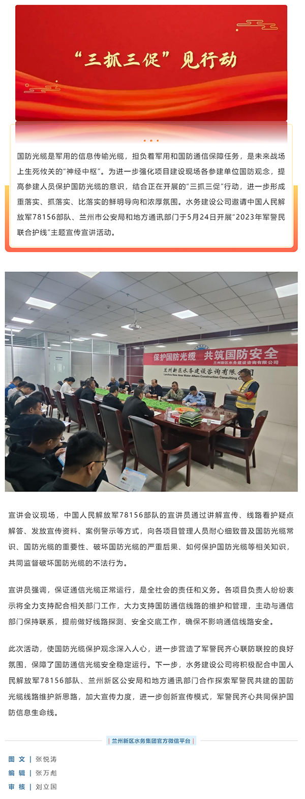 “三抓三促”见行动|水务建设公司召开 “2023年军警民联合护线”宣传座谈会