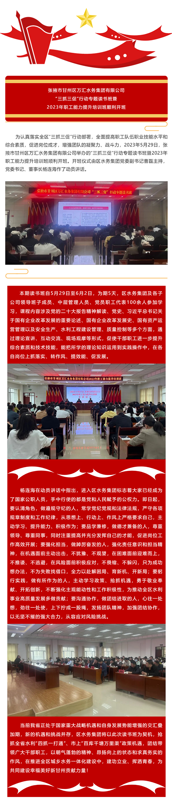 张掖市甘州区万汇水务集团有限公司“三抓三促”行动专题读书班暨2023年职工能力提升培训班顺利开班
