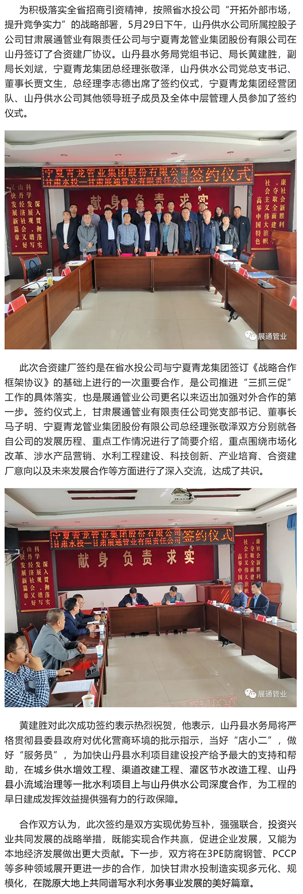 山丹供水公司举行PCP预应力混凝土管生产线项目合作签约仪式