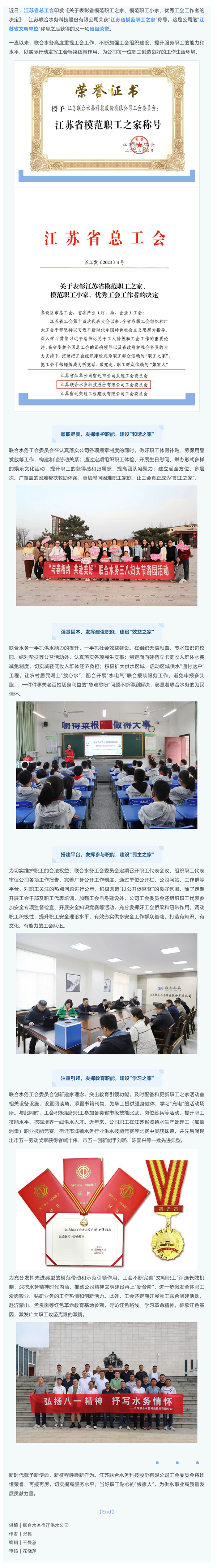 喜报 | 联合水务荣获“江苏省模范职工之家”称号