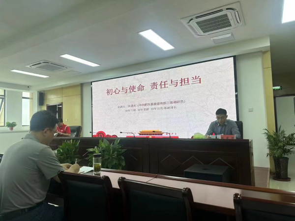 今年是全面贯彻落实党的二十大开局之年,为坚定党员干部立场信念,强化责任担当,发扬斗争精神,立足本职工作, 5月30日,水务集团荣幸邀请到县委宣传部三级调研员、当代作家、电影编剧许泽夫为大家讲授《初心与使命 责任与担当》主题党课。本次授课由集团党委书记、董事长陈爱国主持。