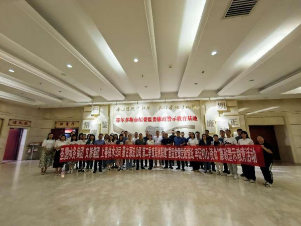 为持续加强公司党风廉政建设,进一步提升党员干部纪律意识和规矩意识,创新党建活动载体,凝聚党建工作活力,6月9日,伊旗上善供水公司党支部联合蒙古源流文化产业发展公司党支部、文旅集团党支部、圣圆水务集团党支部共同开展了联创联建暨“重温党章党规党纪 牢记初心使命”廉政教育活动。
