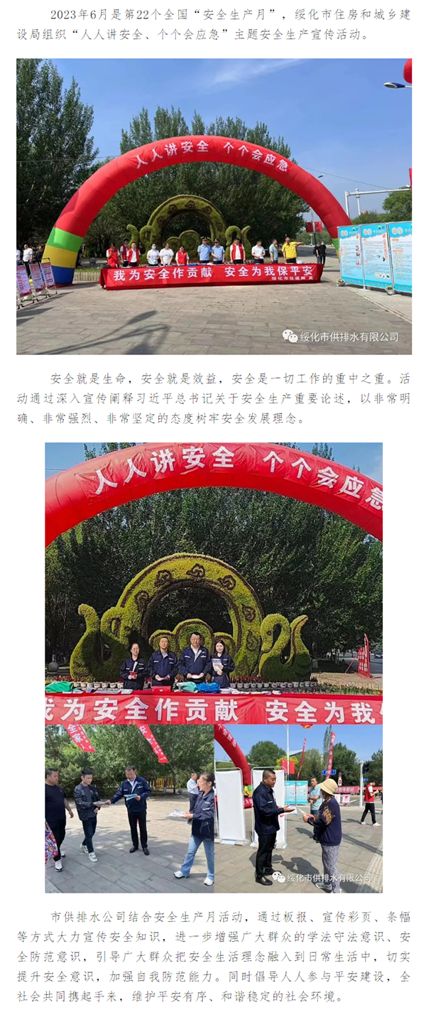 绥化市供排水有限公司开展安全生产月宣传