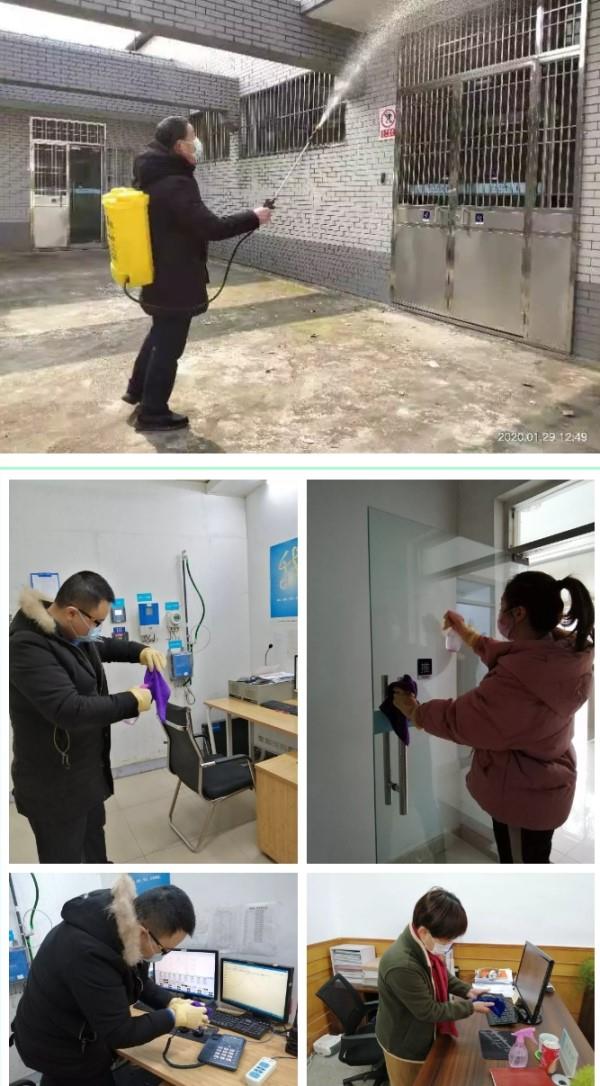 通过三道门禁,小朱来到办公室,先跟同事一起分工合作,将办公室从里到外全面进行了消毒杀菌。好一番忙碌。