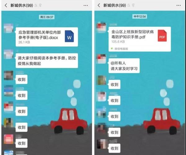 为加强职工安全防范意识,在公司微信群发送新型冠状病毒防护知识手册,组织员工学习防护知识,自觉维护公共卫生和个人安全。