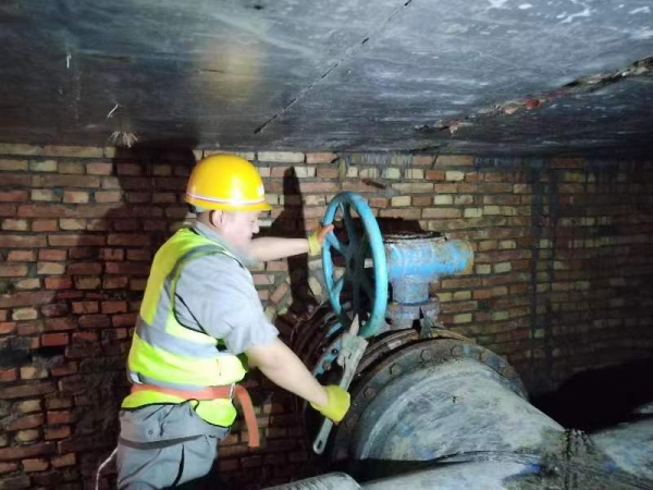 下午17时演练正式开始。演练模拟人员发现原水水质突发异常发生污染事故,造成沉淀池、滤池、清水池水质污染,造成城区大片区域停水。需要进行应急处理,确保出厂水水质安全。接到报警电话,公司事故处理应急指挥部紧急启动抢修应急预案,立刻组织应急抢修人员赶赴现场紧急抢修。关闭原水进水阀门停止进水,关闭送水泵出水阀门及电源停止供水,同时将事故情况报告总指挥。在总指挥的组织下,各部门和分队反应迅速,在接到电话后,人员、维修车辆及装备,承担不同分工抢修任务的各应急分队分别在9-15分钟内先后赶到抢修现场,抢修组立即开展处置水质污染相关工作,组织得力,安排周密,近一个小时紧张抢修处置,事故得以成功处置,17时左右,管道现场水质取样化验合格,阀门开启通水,城区供水管网压力恢复供水正常。