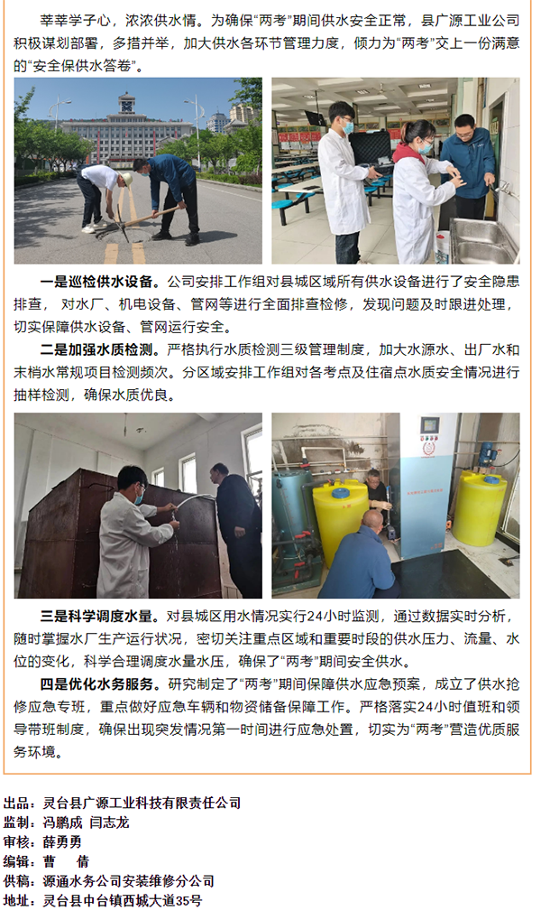 全力做好供水保障 为“两考”保驾护航