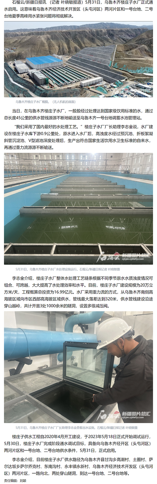 乌鲁木齐楼庄子水厂通水启用