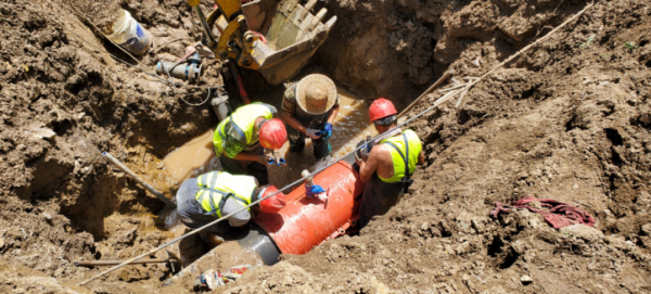 经现场勘查,两处漏水位置处分别处于在胶济铁路的南侧和东侧,在此范围内存在多条铁路行车通讯光缆及电缆,经过现场紧急商讨并在铁路相关部门的沟通配合下,抢修人员决定采取人工挖掘,机械配合的方法,并迅速分成两组用人工挖找的方式,将所有的通讯光缆及电缆进行梳理,同时协助铁路部门对处于供水管道正上方的通讯光缆进行保护。高温致使抢修现场近两米深的工作坑里闷热无比,每位抢修队员都汗流浃背、衣衫湿透,在烈日炙烤和蚊虫叮咬的恶劣环境下,用实际行动诠释着供水人的责任与担当。在大家的共同努力下,于75日下午三点左右,两处漏水点全部抢修完毕并进行通水打压,比原定的抢修完成时间提前了5个小时。