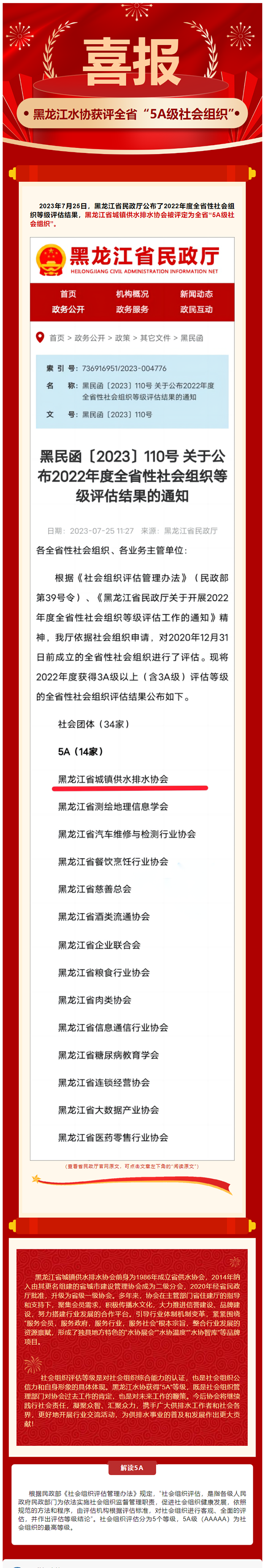 黑龙江水协获评全省“5A级社会组织”荣誉等级