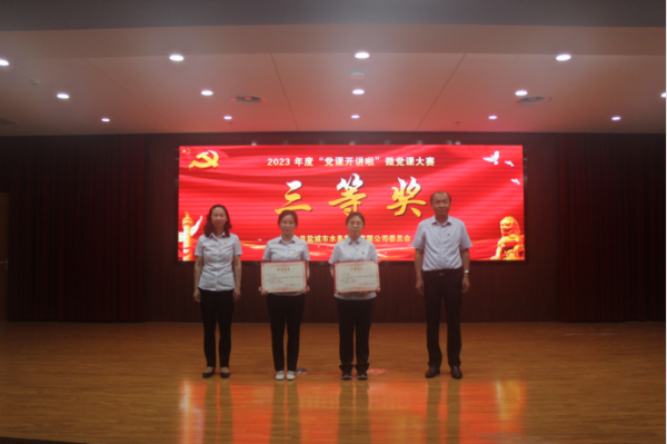 比赛结束后,卞桃华同志作总结讲话,对参赛选手的优秀表现给予了充分的肯定。他点评道,7位选手准备充分,党课富有感染力,很有教育意义。下一步,市水务集团将进一步用好现有优秀党课资源,以赛促讲、以赛促学,带动基层党支部广泛组织讲党课听党课活动,引导党员干部职工自觉学习贯彻习近平新时代中国特色社会主义思想和党的二十大精神,以学增智、以学促干,提升广大党员干部职工政治素养和工作能力,为盐城供水事业高质量发展凝聚磅礴力量!