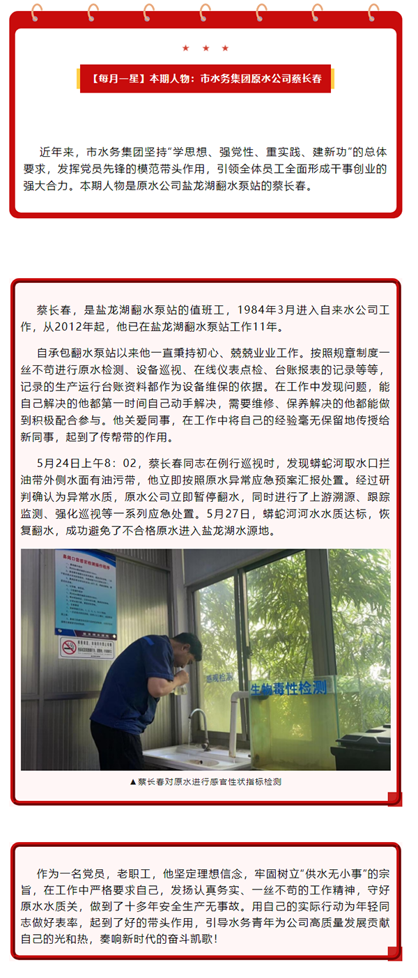 【每月一星】本期人物:市水务集团原水公司蔡长春