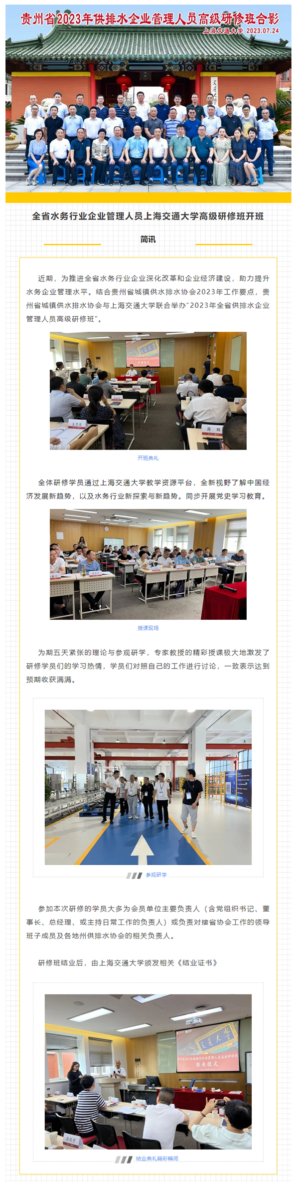 推进深化改革和企业经济建设 助力提升水务企业管理水平——全省水务行业企业管理人员上海交通大学高级研修班开班