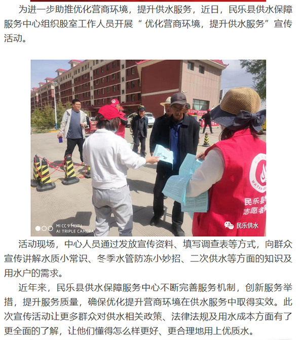 民乐县供水保障服务中心开展优化营商环境提升供水服务宣传活动