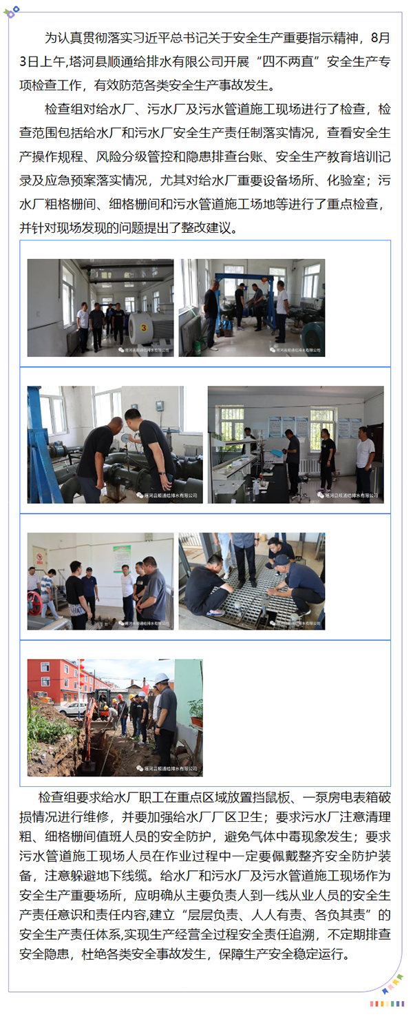塔河县顺通给排水有限公司开展‘“四不两直”安全生产专项检查工作