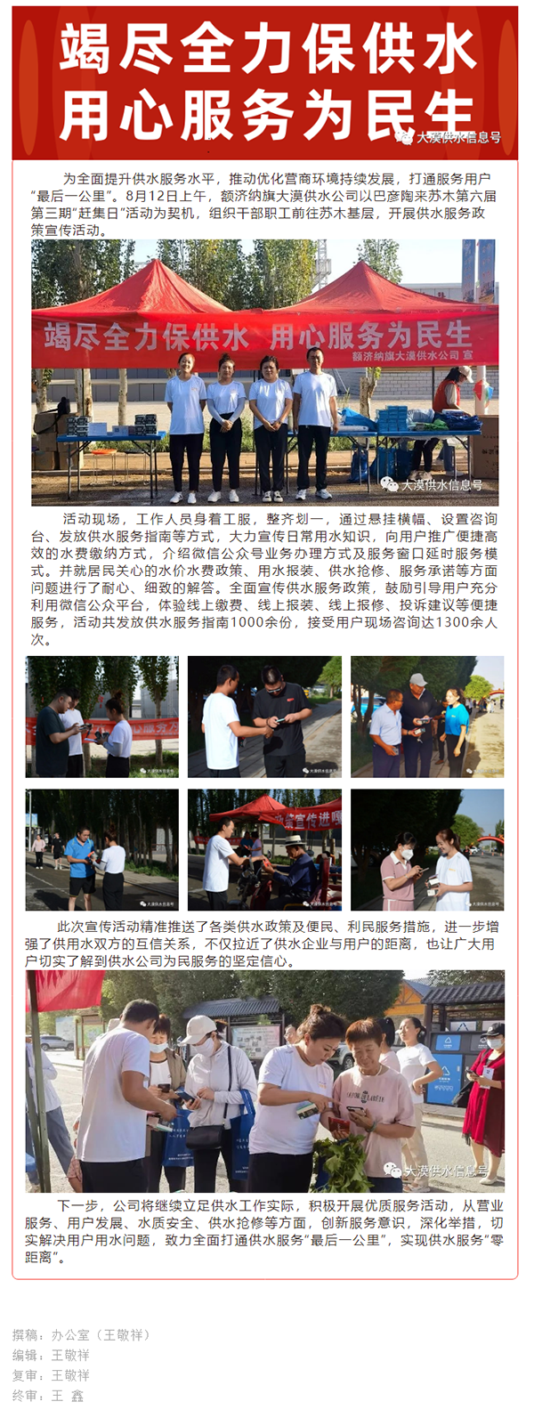 额济纳旗大漠供水公司开展“供水服务下基层”政策宣传活动