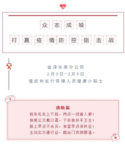 在一线职工坚守岗位保障供水安全的同时,上海城投水务集团原水公司金泽水库分公司综合办的党员职工们也丝毫不懈怠,他们放弃休息时间,赶到单位,群策群力,制作编辑了一份《健康小贴士》,用顺口溜的形式,对各个岗位的职工有针对性的进行健康宣传和工作灌输。《健康小贴士》一经发布,很快迎引来了在岗职工们的关注和讨论,无形中筑起了一道防疫思想防线。