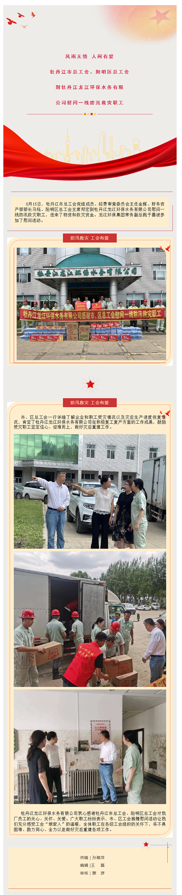 风雨无情 人间有爱——牡丹江市总工会、阳明区总工会到牡丹江龙江环保水务有限公司慰问一线防汛救灾职工