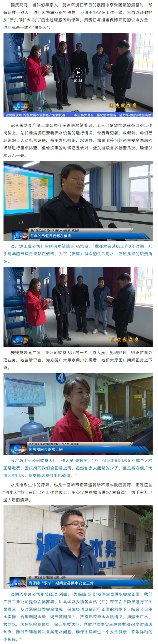 【国庆我在岗】坚守岗位保供水 国庆假期“不打烊”