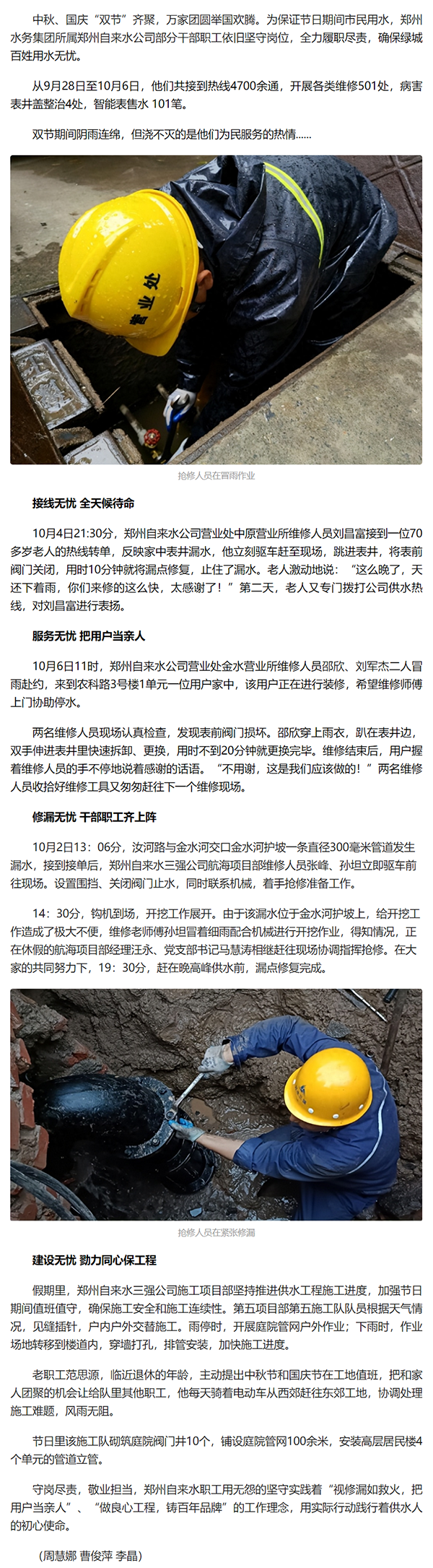 您家“双节”供水无忧,离不开郑州供水人的默默付出