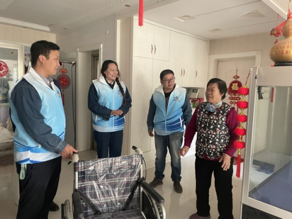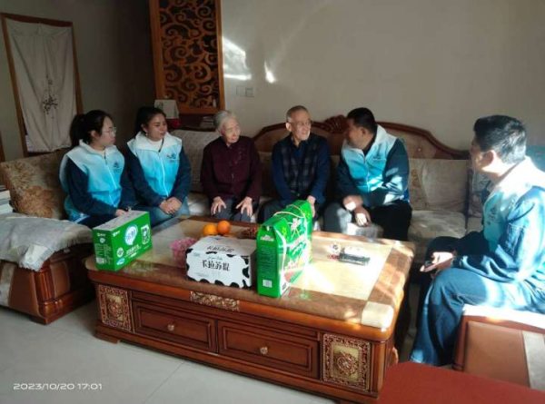 在重阳节来临之际,爱心启航“小蜂队”成员一起来到老人的家中,与老人们促膝谈心,表达了对孤寡老人的关爱之情,同时,他们还为老人们送去牛奶、中老年营养宝等营养品,详细了解老人的生活情况和实际困难,其中有位老人行动不便,志愿者为其送去了轮椅;还有位老人不方便出户购买水费,志愿者听到后立即动身帮忙购买水费…。当日,老人家内欢歌笑语、秋意融融。志愿者们与老人们亲切交谈、唠家常,不仅询问他们的身体状况和生活情况、还提醒老人近期流感高发,多加防范,饮食起居要注意卫生,行动要注意安全,蓝马甲志愿者们穿梭在社区的居民楼里,将一声声祝福、一句句问候、一份份爱心送给了老人。