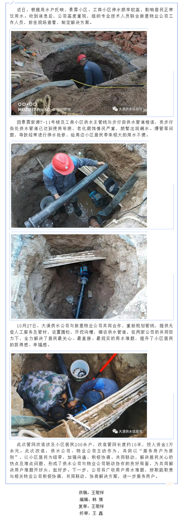 “民有所呼 我有所应” 旗大漠供水公司联合新意物业公司共同解决居民用水难题