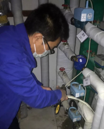 当天值守的集团京兆公司顺源街水表维修所副所长李京和维修员张士龙,在确认用户不咳嗽、不发烧、小区无疫情的情况下,与用户约定立即上门查看情况。随后,他们准备好维修设备,做好个人防护,前往用户家中。