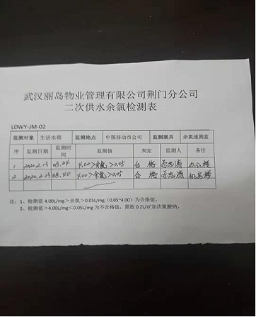 荆门市市政公用处同时建立了二次供水工作群,要求正在使用的各二次单位每天将消毒情况和余氯检测数据上报我处,切实将二次供水管理工作落到实处。