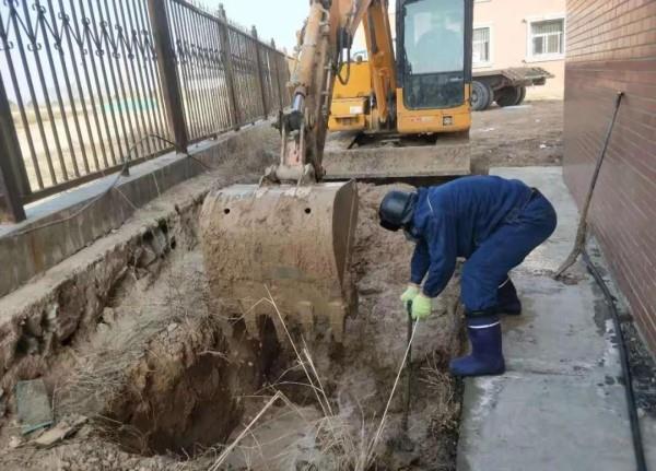 近日,太阳山水务维修服务公司接到管委会公租房小区内供水DN160PE主管漏水险情,立即组成党员突击队赶赴现场。漏水点位于11号楼与围墙之间,净宽3米多,埋深2米多。机械施工回转距离不够,如不及时处置,将会使200多户居民停水。