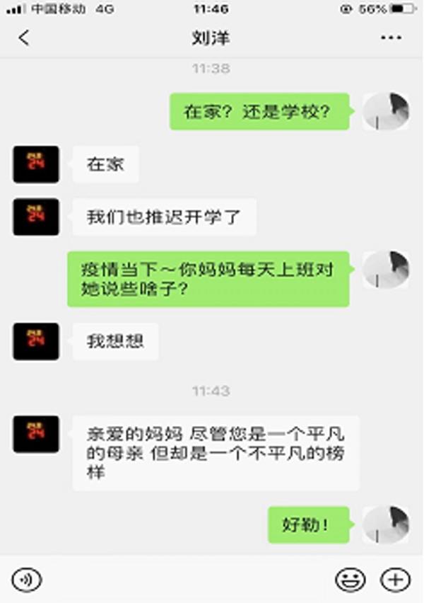 8.刘岩彤   心里话:只要坚守,没有打不赢的仗。相信自己,相信政府,相信国家。疫情一定会在坚守中转好。