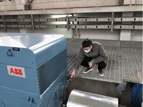 水厂职工巡视水泵机组运行情况
