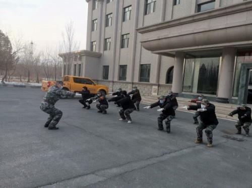 每日的训练分为慢跑训练、方阵训练、俯卧撑训练、深蹲起训练、拉歌训练等五种训练项目。首先由安防部主管王博带领职工围绕办公楼前的花坛进行2-3圈的慢跑进行热身,活动筋骨。随后全体人员按大小个整齐排列,开始训练。在王“教官”坚定有力的口令下,职工队列动作完成的干净整洁,报数时摆头迅速,训练时口号洪亮,队列动作保持注意力集中,团队队列动作整齐划一口号洪亮。紧接着是俯卧撑和深蹲起的训练,每日根据训练人员的不同情况做数量不等的俯卧撑和深蹲起,既不会让人肌肉拉伤、运动量过大,又能让人感到运动后的舒适感。最后一起进行晚饭前的拉歌,通过合唱《团结就是力量》《咱们工人有力量》《黄河大合唱》等经典歌曲来激发职工的斗志,增强职工的凝聚力。