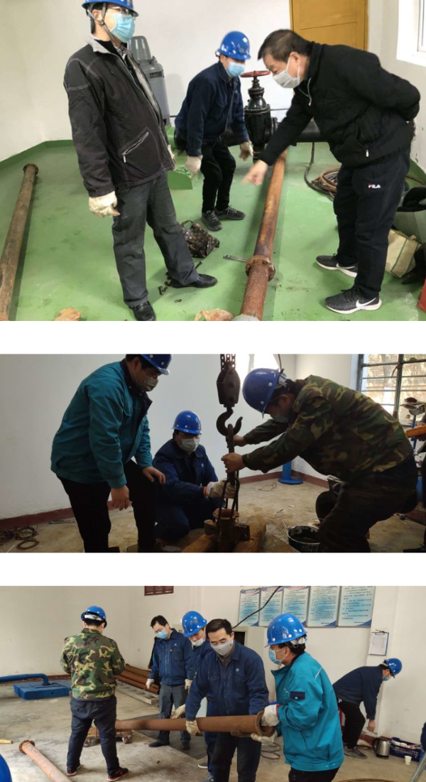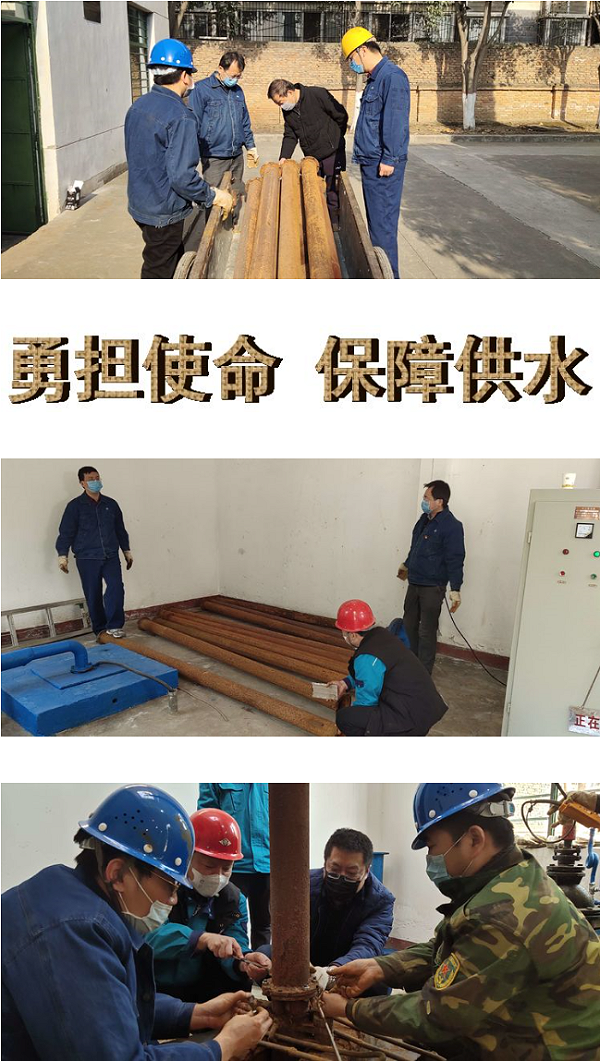 经过18日、19日两天紧张的抢修,共提井管26根,更换破损井管12根。截止19日下午四时许,2眼水源井已全部恢复正常,并投入了运行,保障了疫情期间的正常供水。