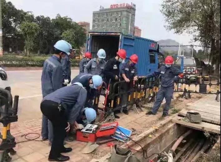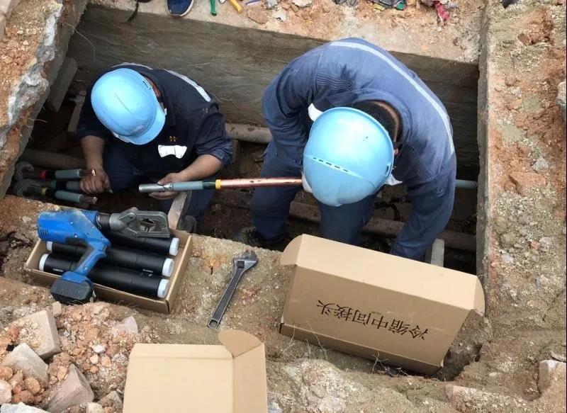 那边厢,同时间赛跑的是紧锣密鼓推进的供电故障排查抢修。由于该段地下高压电缆是从110kV侨场站引至潼湖水厂高压配电房,沿途长达8公里的线路异常复杂,因此,对抢修面临的困难必须要有充分的思想准备。为了不遗漏任何一处疑似故障点,检测人员背着沉甸甸的探测设备沿着地下电缆路径步行探测,在寒风侵肌和刺骨冰雨中仔细“望、闻、问、切”、逐一排查,电缆故障点在地毯式的详尽摸查下终究露出庐山真面目。在抢修现场,市供水公司和惠城电力公司相关负责人靠前指挥、亲自督战,供水人和电力人发挥同舟共济的协作精神、借助联合作战的丰富经验,全情全力投入到电缆故障抢修作业当中。