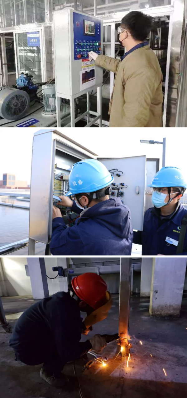身穿青、蓝色维修服,手持工具,穿梭在机械、设备、仪器之间,他们是设备维修工,也是污水污泥处理的坚实保障。