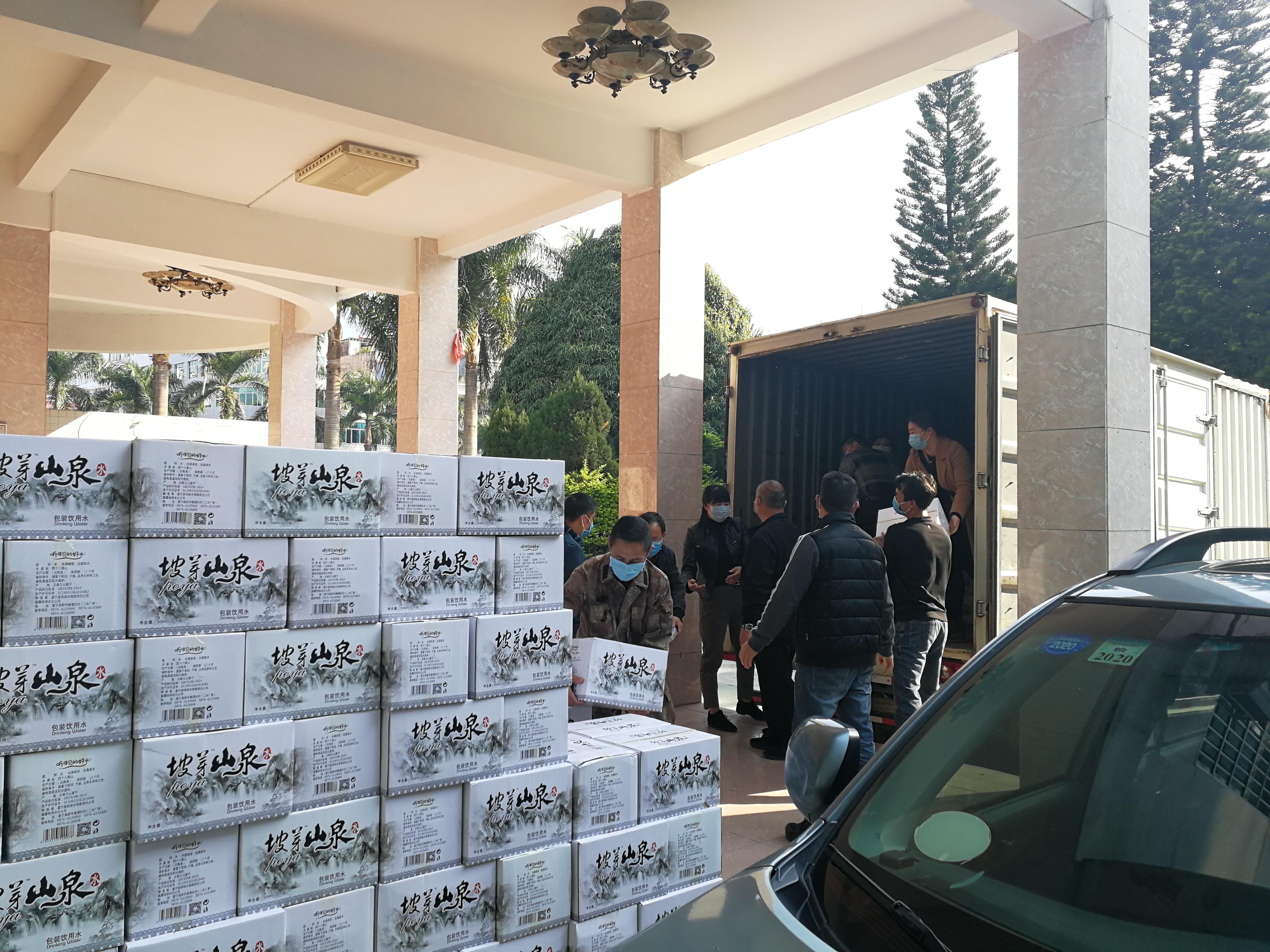 当前全国人民都在全力抗击新型冠状病毒感染肺炎疫情,严守疫情,防控传播是当下摆在全社会中重之重的工作任务。富宁县为防止新冠病毒疫情传播,供抽调400多名警务人员和医生,设立50多个疫情防控监测站。各乡镇、办事处、村寨更是自发组织村村隔离、寨寨封堵,严控疫情传播。警务员和医生们常日战斗在深山野外,交叉路口,夜以继日工作。他们吃不好、穿不暖、睡不好,有时喝水都成问题。我公司了解到这实际情况后,向富宁县新型冠状病毒感染防控指挥部捐赠了1000件500ml坡芽山泉水和500桶18.9L坡芽山泉水,价值2万余元。帮助疫情防控监测站值勤人员解决生活用水问题,尽一份供水人的社会责任!
