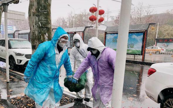 2月15日,狂风裹着大雪袭击着荆楚大地,路面上铺了一层厚厚的雪,公司党员依然坚守着岗位。他们穿着雨衣带着口罩站在卡口,冒着大雪,在小区门口和指定的卡点值班,为路过的行人测量体温,劝阻行人在疫情防控关键时期不要外出。自下沉到社区以来,他们积极协助社区干部开展疫情摸排调查,帮助环卫工人清理垃圾,平均每天要打几百个电话,与住户联系,并告知相关要求,常常一天下来喉咙都嘶哑说不出话来。
