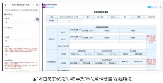 另一方面,提高信息报送效率,突击开发上线“单位疫情简报”在线填报及“每日员工状况”填报小程序,支撑集团各单位疫情监督与信息上报工作,实现疫情防控及生产运营信息可知、可视、可控。