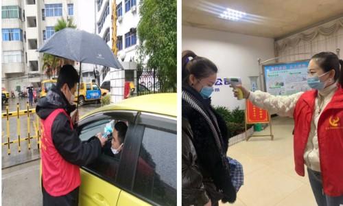 在职党员主动认领测量体温 “志愿服务岗”,对进出厂区、办公场所人员测量体温