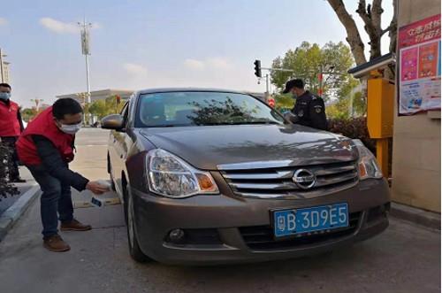 党员龙海涛主动到枣树翰林社区报到,到枣树园小区为进出小区外地车辆消毒