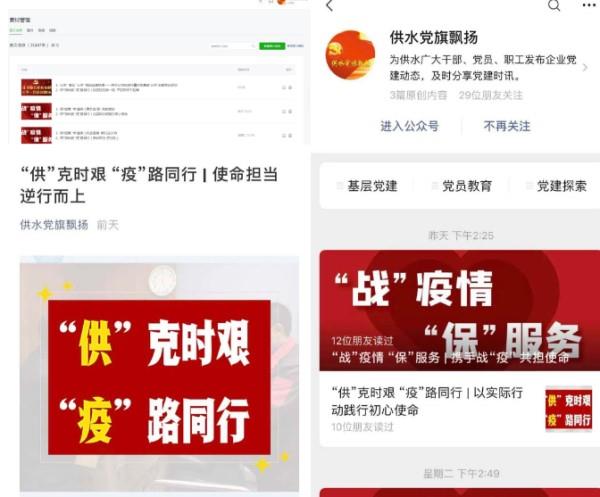 三是早宣传。抗疫以来,供水公司党员干部职工上下一心,为城市供水安全保障团结奋战,期间涌现出了许多感人事迹和人物,公司在“党员来了”APP、“供水党旗飘扬”等公众微信号上陆续进行了推送报道。此次编辑了先进事物集锦集中下发至基层党支部,方便广大党员干部学习,向先进看齐。