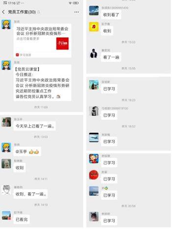 近日,乌鲁木齐水业石墩子山水厂党员工作群内每日都会接收到这样一条消息,目前疫情形势严峻复杂,处于防控关键时期。广大党员干部战斗在疫情防控供水第一线,为避免人员聚集,减少风险,在这特殊时期,石墩子山水厂上线了“党员云课堂”这一特殊党员学习模式,每日全体党员在群内打卡学习,以互联网思维创新打造“云课堂”,把支部建在线上,将党员教育搬上指尖。