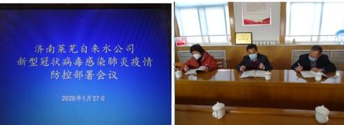 为做好疫情的预防和控制工作,1月27日公司组织召开新型冠状病毒感染的肺炎疫情防控部署会议,会议明确要坚决贯彻习近平总书记关于新型冠状病毒感染的肺炎疫情防控工作重要指示精神和李克强总理的批示要求,落实市委市政府关于疫情防控的工作部署,坚决打赢疫情防控阻击战。会议决定成立新型冠状病毒感染肺炎防控工作领导小组,加强供水设施的巡查和巡检,增加水质检测的频率和项目,封闭水厂及重点供水设施,制定出入管理制度,严控出入厂区人员,对重点生产及服务区域实行24小时清洁维护和卫生消毒,全力确保供水安全。