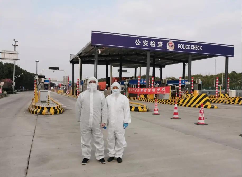 站在左边的是高伟,金山自来水公司朱泾分公司的副经理。2月27日那天,作为志愿者的他和妻子在亭枫S36道口检查站不期而遇,夫妇俩携手共同守护着金山的西大门,守好筑牢这一道健康防线,成为抗疫阻击战中的一段佳话。在抗疫阻击战中,他俩将14岁的女儿,2周岁的双胞胎儿子托付给了双方父母后,全身心投入到各自的工作岗位,立足本职,双方用各自的方式齐心战疫。