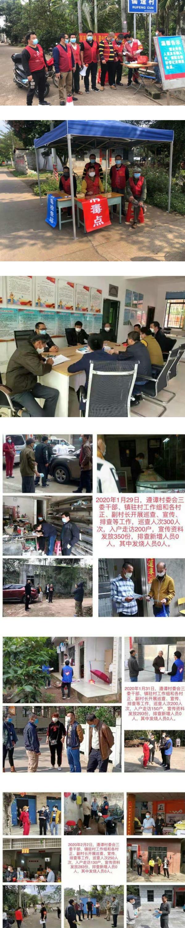 乡村振兴工作队进驻后主要开展以下工作:一是配合村两委设立领导小组,整合村委力量包干到村,落实责任到人;二是做好疫情防控宣传工作,积极入村宣传,张贴宣传海报等,做好防控科普、宣传教育和舆论引导;三是排查人员组成,筛选出居住本地的外省人口并从中深入排查是否有假期出省情况以及是否有患者或疑似病例密切接触人员;四是整合汇总排查信息;五是发动各村民小组成立村口劝导点;六是每天早上组织村两委干部、党员先锋队到各村劝导点巡查每天宣传情况、劝阻外来人员并进行车辆登记。