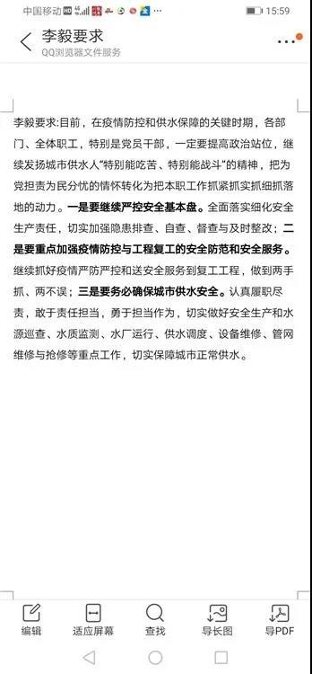 最后,德阳城市供水支部书记、主任汤健就如何做好疫情防控期间保障城市供水安全工作,再强调、再要求、再布置。汤健指出:一是充分认识疫期保障供水的重要性,压紧压实责任,切实做好各项环节的工作,抓好落实。二是抓好疫期的防控工作,严格按相关规定执行,要讲政治,讲大局,不能有麻弊大意的思想。三是做好个人的防护工作,要对自己,家人,社会负责任,中心班子,中层干部,共产党员要起好带头作用,做好供水人应该承担的责任。